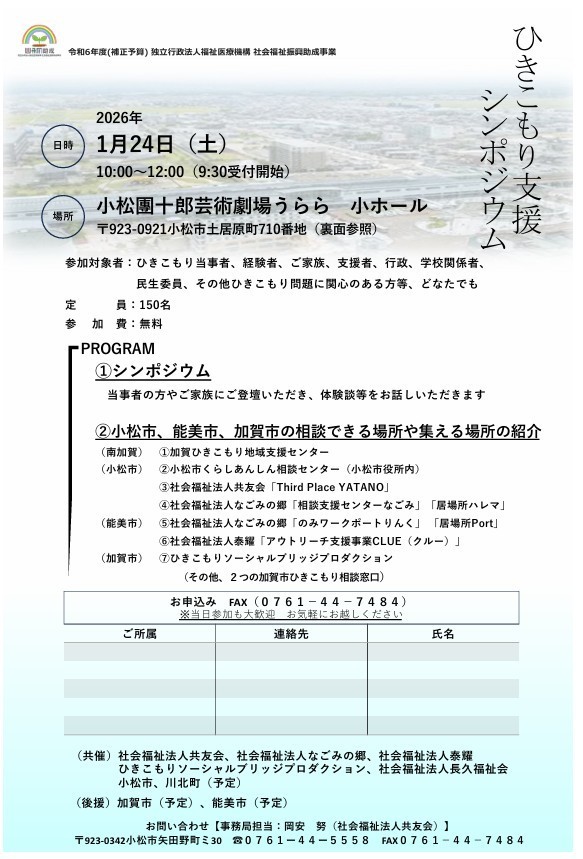 社会福祉法人共友会、社会福祉法人なごみの郷、ひきこもりソーシャルブリッジプロダクション、